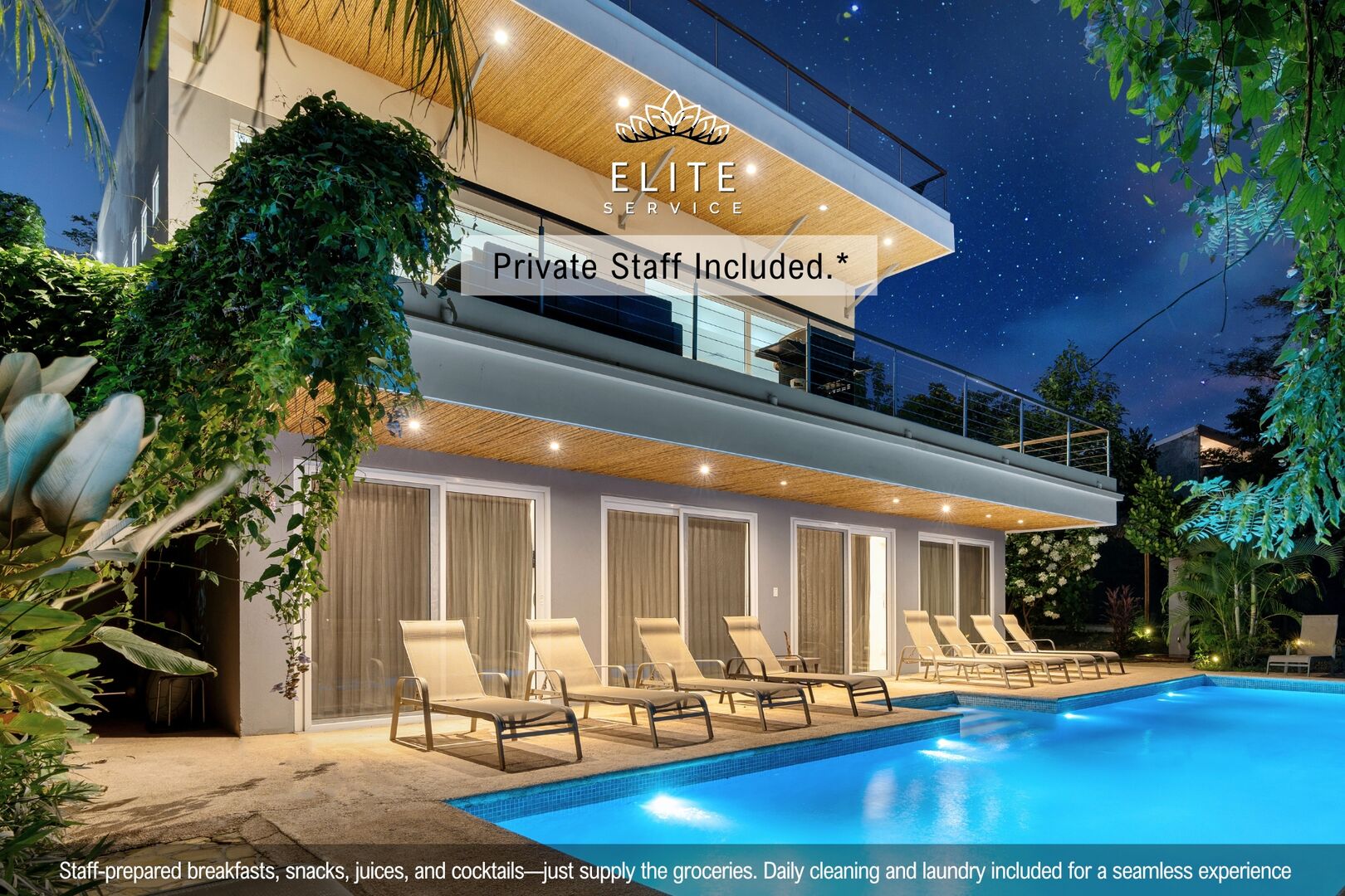 Casa Howler comes with our Elite Service Standard – because family trips are more fun when someone else does the laundry. You’ll enjoy daily housekeeping, laundry service, and breakfast/snack prep (you provide the groceries), so your vacation can actually feel like a vacation. Want to upgrade to private chef dinners or full-day excursions? We’ve got you covered.